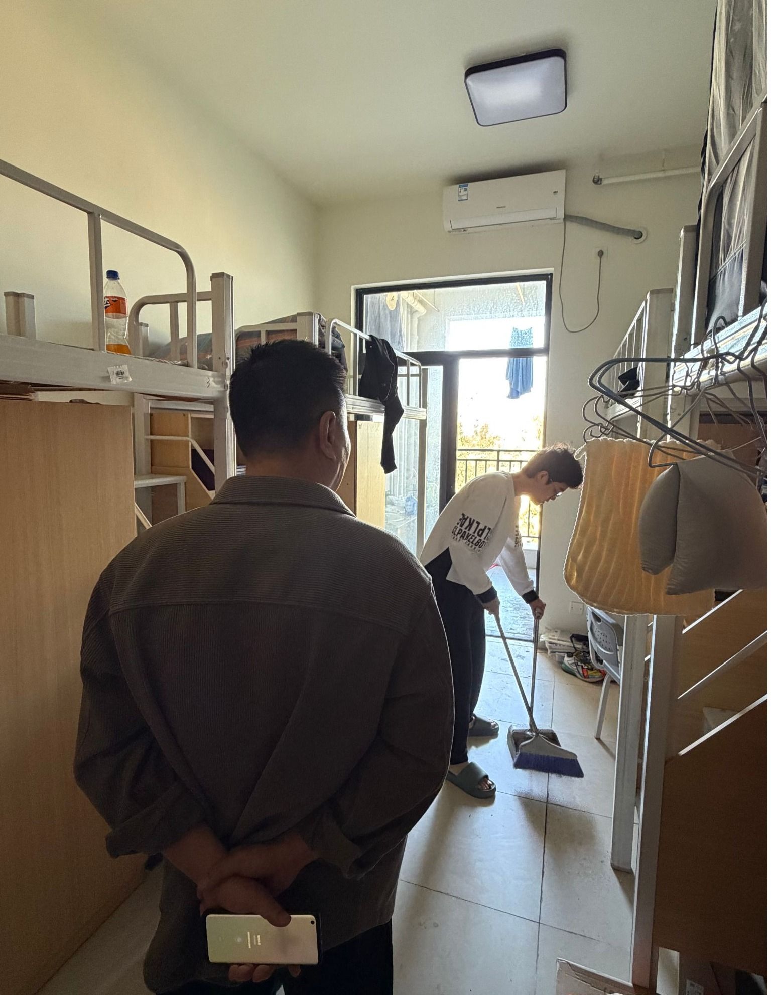 贺勇书记实地查看书院值班办公室情况,详细询问值班安排、假期管理、应急处置等落实细节,并叮嘱值班老师做好假期安全保障与服务工作。之后贺勇书记深入学生宿舍走访,与留校学生亲切交流,了解其假期生活、学习情况。