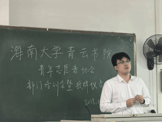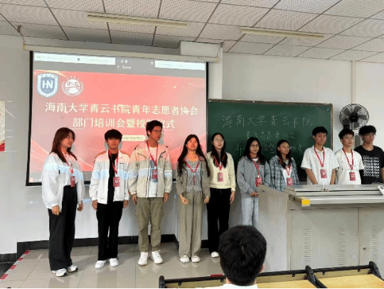 秋染椰园风送爽,志愿同行意更浓。为进一步夯实志愿服务工作基础、凝聚青年公益力量,海南大学青云书院青年志愿者协会于10月29日举行部门培训大会暨授牌仪式,为新学期志愿服务规范化开展注入青春动能。本次活动由青协办公室负责人白明依主持,青云书院青协指导老师张恒,青协会长林熙媛、周子玥,各部门负责人及全体成员共计38人参加。