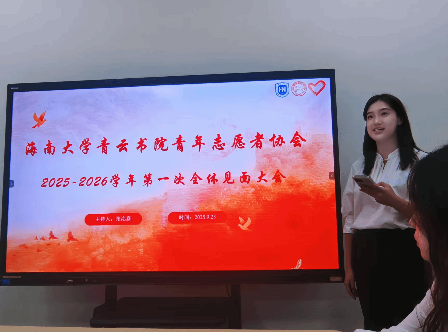 大会伊始,主持人张洺嘉以“时序更替,华章日新。青春正好,同心同行”为引,对全体成员的到来表示欢迎,阐明本次见面会旨在促进成员相识相知,凝聚团队力量,为新学年志愿服务工作奠定基础。