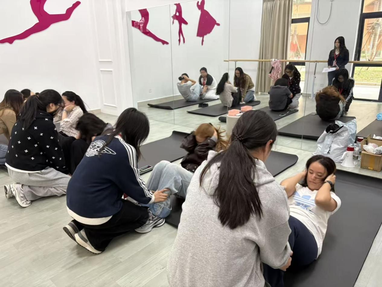 仰卧起坐区域同样战意正浓。同学们在辅助人员的配合下,一次次起身、触膝、躺下,动作干净利落。有人速度惊人,有人稳扎稳打,哪怕腹部酸楚、呼吸急促,也绝不轻言放弃。“还有十秒!坚持住!”每一句鼓励,都成为她们冲刺终点的动力。